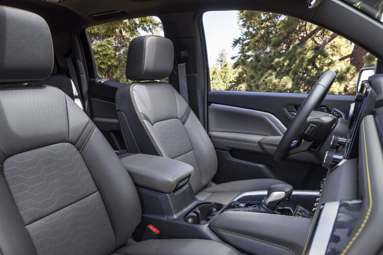The 2026 Colorado offers a variety of exterior color choices to match your style and personality. Interior options include Jet Black cloth or Evotex seating surfaces, with select trims offering Jet Black/Adrenaline Red combinations in both cloth/Evotex and perforated leather-appointed materials. The ZR2 also features an exclusive Jet Black/Artemis perforated leather-appointed option for those seeking a unique interior aesthetic.