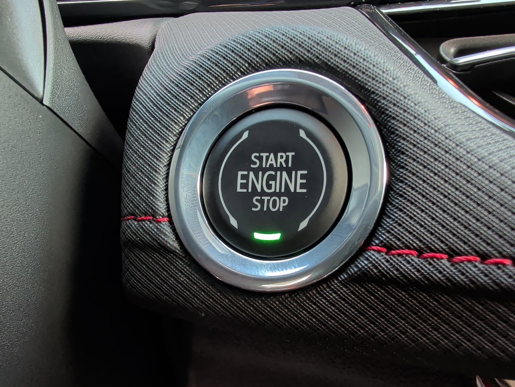 - With the vehicle in Park or Neutral, press the brake pedal and then press the engine start/stop button to start the engine; the green indicator on the button will illuminate
