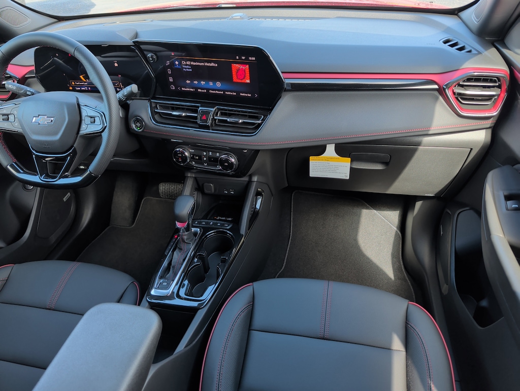 Experience the thrill of the new 2026 Chevrolet Trailblazer AWD RS in stunning Red, with only 5 miles on the odometer. This sporty SUV is powered by an efficient ECOTEC 1.3L Turbo I3 engine paired with a smooth 9-speed automatic transmission and advanced all-wheel drive for confident handling in any condition. Enjoy top-tier features like the RS Preferred Equipment Group, 19" High Gloss Black Machined Aluminum wheels, and a bold two-tone roof accent. Inside, you'll find leatherette heated front seats, an 8-way power driver seat, a panoramic dual-pane sunroof, and a Bose 7-speaker premium audio system with wireless Apple CarPlay/Android Auto. Safety comes first with Lane Keep Assist, Forward Automatic Braking, Rear Cross Traffic Alert, Side Blind Zone Alert, and a rearview camera. Convenience abounds with hands-free power liftgate, remote start, adaptive cruise control, wireless charging, and a large 11-inch touchscreen display. The 2026 Trailblazer RS offers cutting-edge style, comfort, and technology-ready for your next adventure.