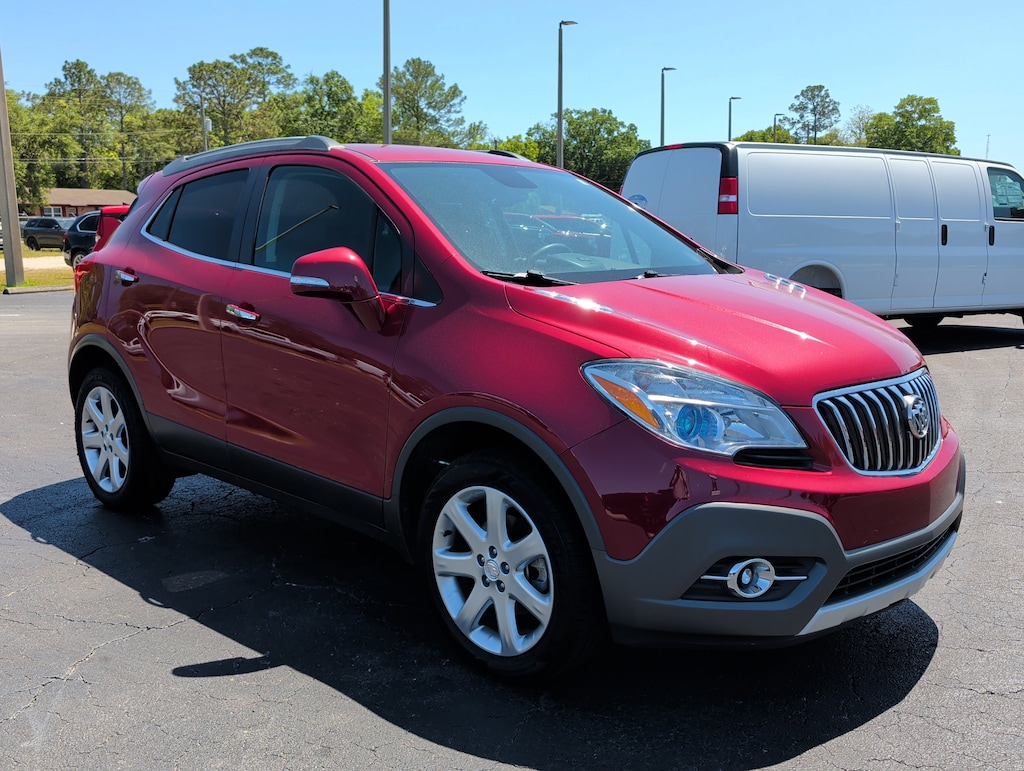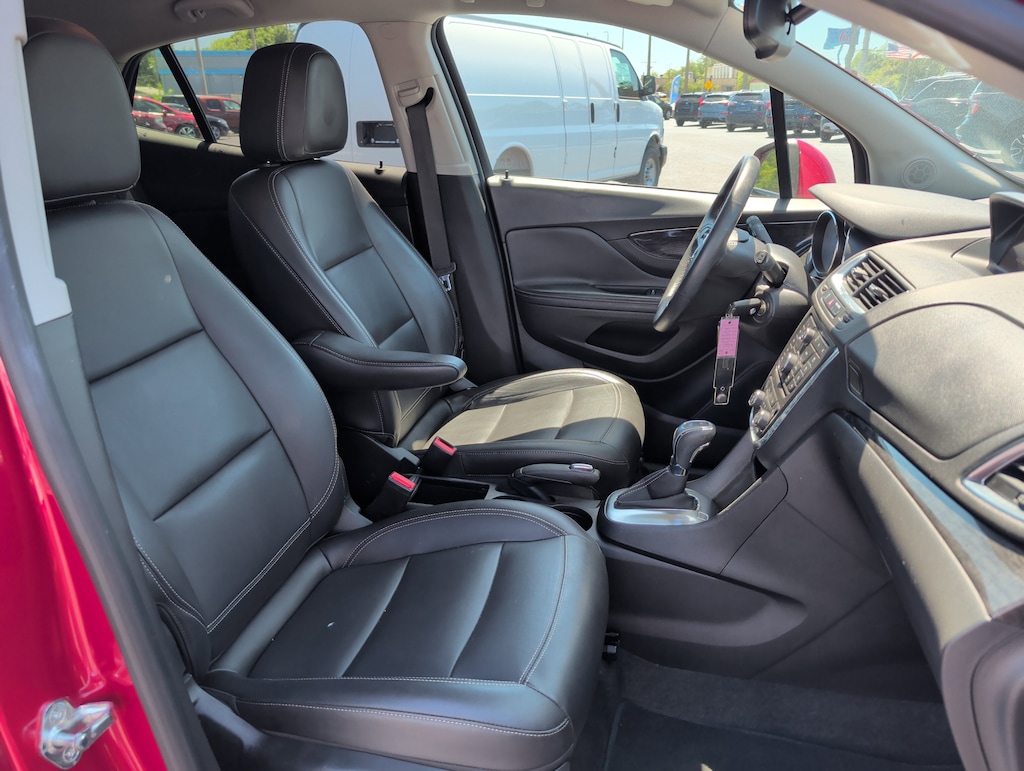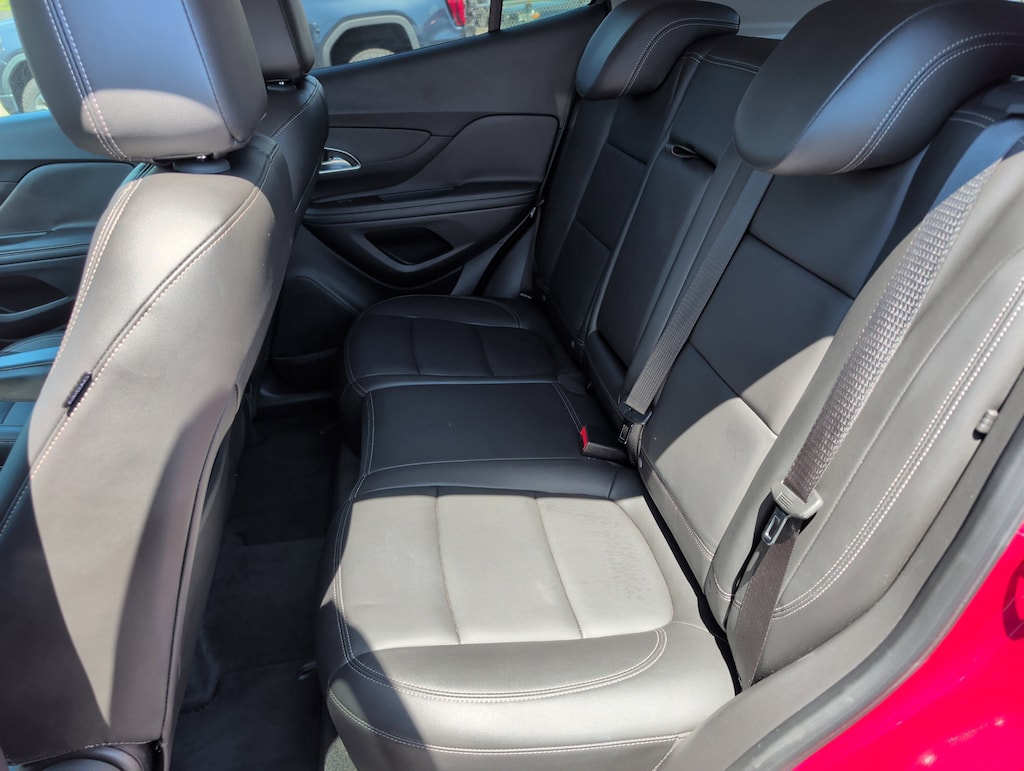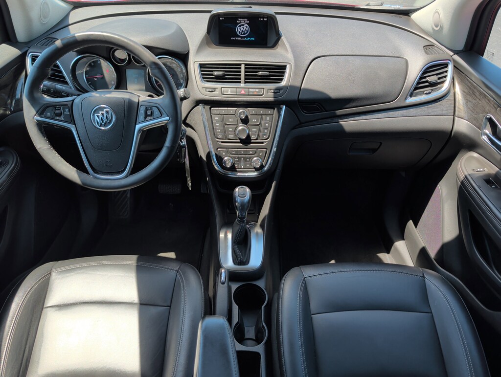 Experience comfort and versatility with this 2015 Buick Encore AWD Leather 4dr Crossover. Powered by a fuel-efficient 1.4L Turbo engine and advanced AWD system, it's ready for all seasons. Enjoy premium features including leather-trimmed seats with power adjustments, heated front seats, IntelliLink infotainment with a 7-inch touchscreen, Bluetooth, SiriusXM radio, and built-in Wi-Fi hotspot. Safety is top-notch with rear cross traffic alert, blind spot sensor, rearview camera, and multiple airbags. Convenience features include remote engine start, automatic climate control, heated steering wheel, cruise control, power windows, and keyless entry. With split-folding rear seats and ample cargo space, it's perfect for daily drives or weekend getaways. Stylish chrome accents, black roof rails, and a modern design complete the package. Test drive this well-equipped Encore today and enjoy the perfect blend of luxury, technology, and safety.