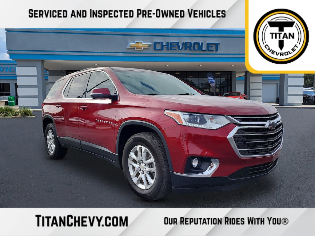 Drive in style and comfort with this eye-catching Red 2018 Chevrolet Traverse LT Cloth. This spacious 4-door SUV is powered by a robust 3.6L V6 engine paired with a smooth 9-speed shiftable automatic transmission, delivering both performance and efficiency. The Traverse LT offers premium features such as Apple CarPlay and Android Auto integration on a 7-inch MyLink infotainment touchscreen, Bluetooth connectivity, SiriusXM satellite radio, and built-in Wi-Fi hotspot for seamless connectivity on the go. Enjoy the comfort of power-adjustable driver's seat with lumbar support, dual-zone automatic climate control, and rear air conditioning. Safety is a top priority with a rearview camera, third-row side curtain airbags, stability and traction control, and the Convenience and Driver Confidence Package. With versatile flat-folding third-row seats, captains chairs, and ample cargo space, this Traverse adapts to your every need. Make every journey enjoyable in this well-equipped and family-friendly SUV. Schedule your test drive today!