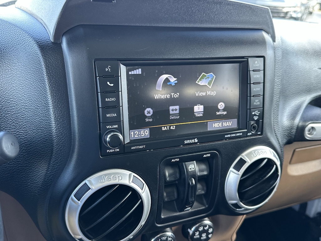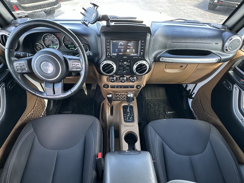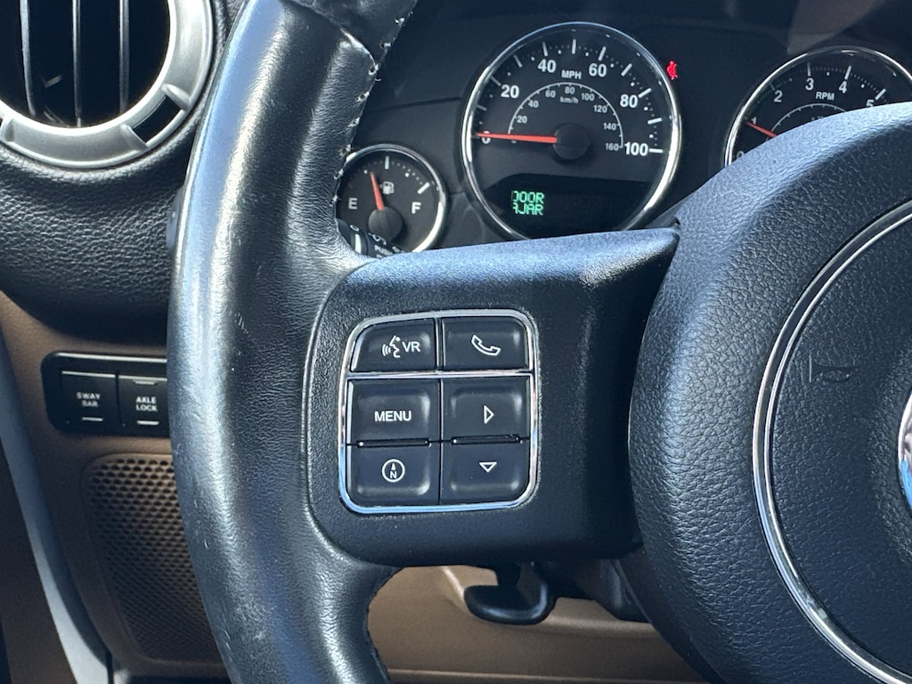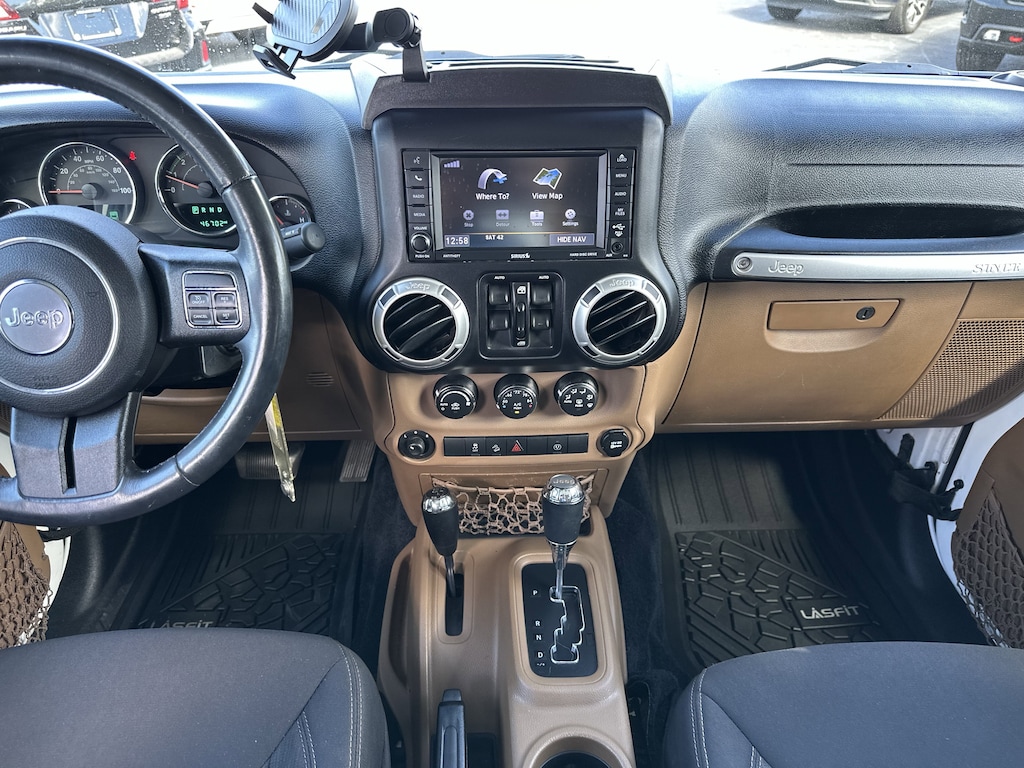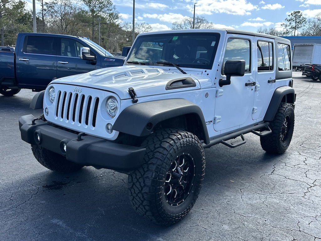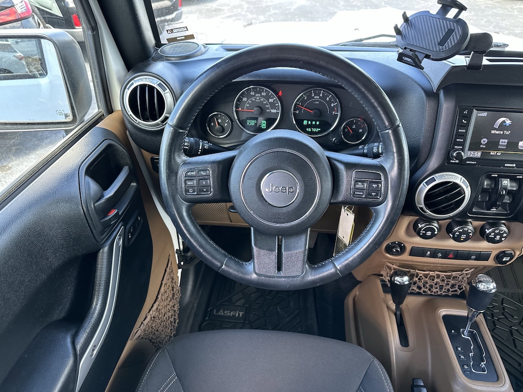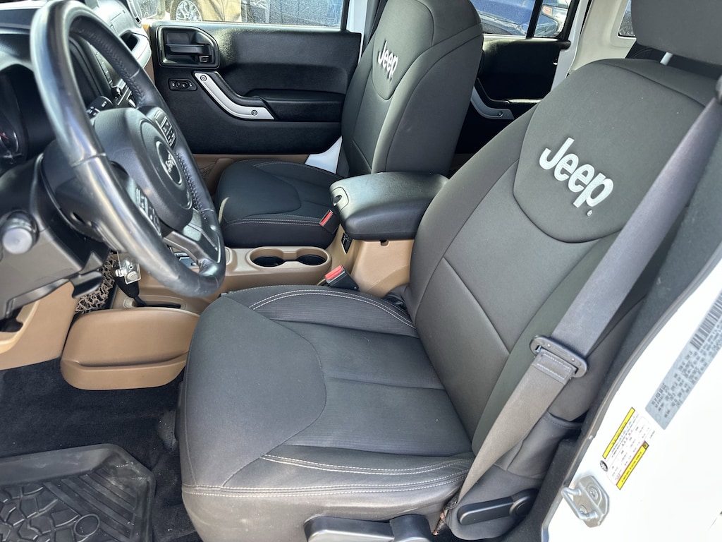 Conquer any terrain with this rugged 2018 Jeep Wrangler JK Unlimited Rubicon 4x4 in striking white. Built for off-road adventure, it features a powerful 3.6L V6 engine, part-time 4WD, off-road tuned suspension, front and rear tow hooks, and both front and rear skid plates. Enjoy the removable soft top for open-air freedom and LED headlights and fog lights for superior visibility. Inside, you'll find a leather-wrapped steering wheel, premium audio with SiriusXM capability, voice-operated radio, and convenient connectivity options including USB and auxiliary inputs. Comfort features include air conditioning, cruise control, reclining seats, and a spacious rear cargo area with folding seats for extra versatility. Safety is prioritized with 4-wheel ABS, stability control, hill holder, rear crumple zones, and a tire pressure monitoring system. Aluminum alloy wheels and a bold black 3-piece hardtop complete the package. This Wrangler Rubicon delivers the ultimate blend of iconic Jeep style, capability, and comfort-ready for your next adventure.