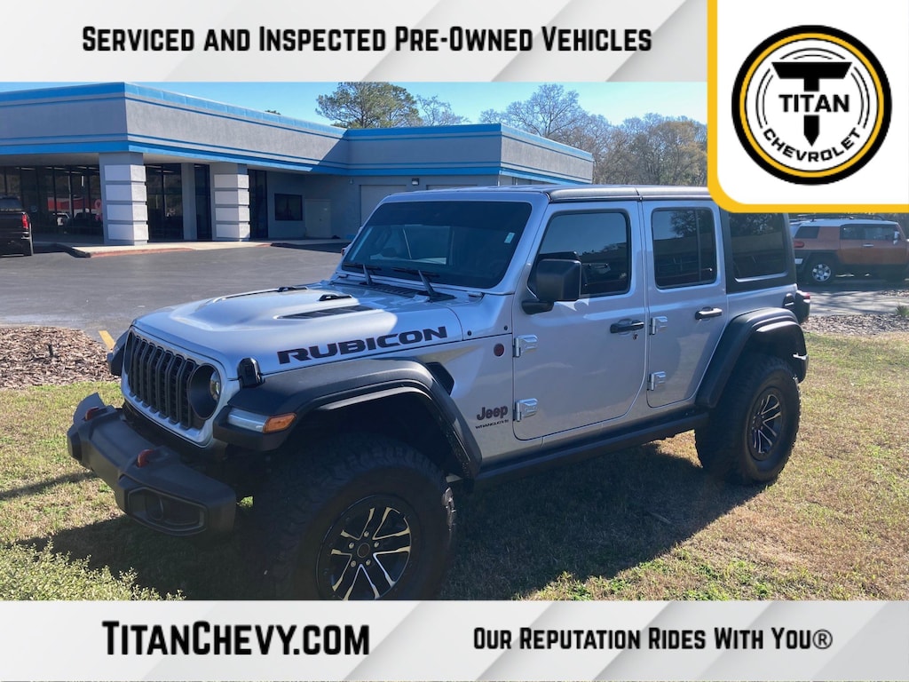 Experience legendary off-road capability with this Silver 2024 Jeep Wrangler Unlimited Rubicon 4x4! With just 5,734 miles, this nearly-new SUV is ready for your next adventure. Enjoy rugged features like front and rear locking differentials, electronic disconnecting front stabilizer bar, off-road tuned suspension, and a robust 3.6L V6 engine paired with an 8-speed automatic transmission. Stay connected and entertained with the 12.3-inch Uconnect touchscreen, wireless Apple CarPlay/Android Auto, SiriusXM, Wi-Fi hotspot, and customizable digital instrument cluster. Safety and convenience abound with adaptive cruise control, front automatic emergency braking, rearview camera, push-button start, and multiple smart device app functions including engine start and vehicle location. The Rubicon's distinctive style includes LED headlights/fog lights, black 3-piece hard top, and all-weather floor mats. Whether you're tackling tough trails or cruising city streets, this Wrangler Rubicon delivers unmatched versatility, comfort, and technology. Don't miss your chance to own the ultimate off-road icon-schedule your test drive today!