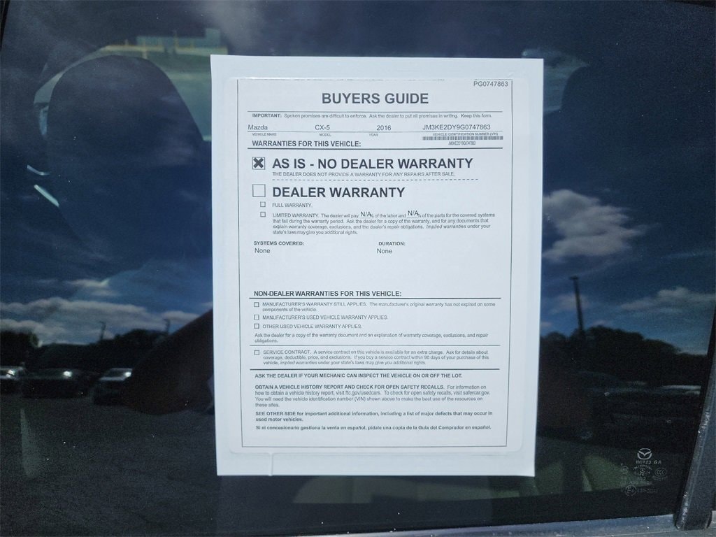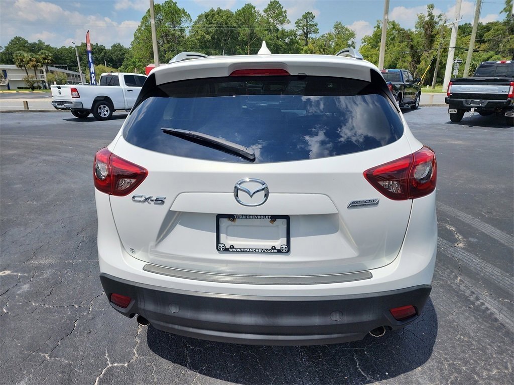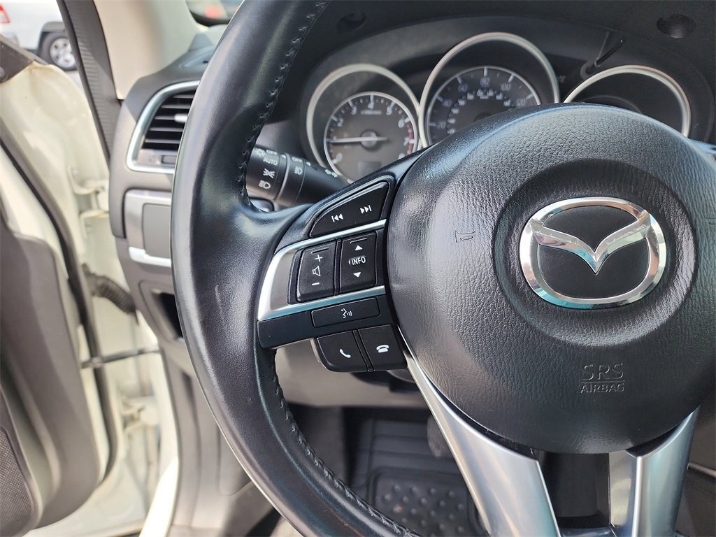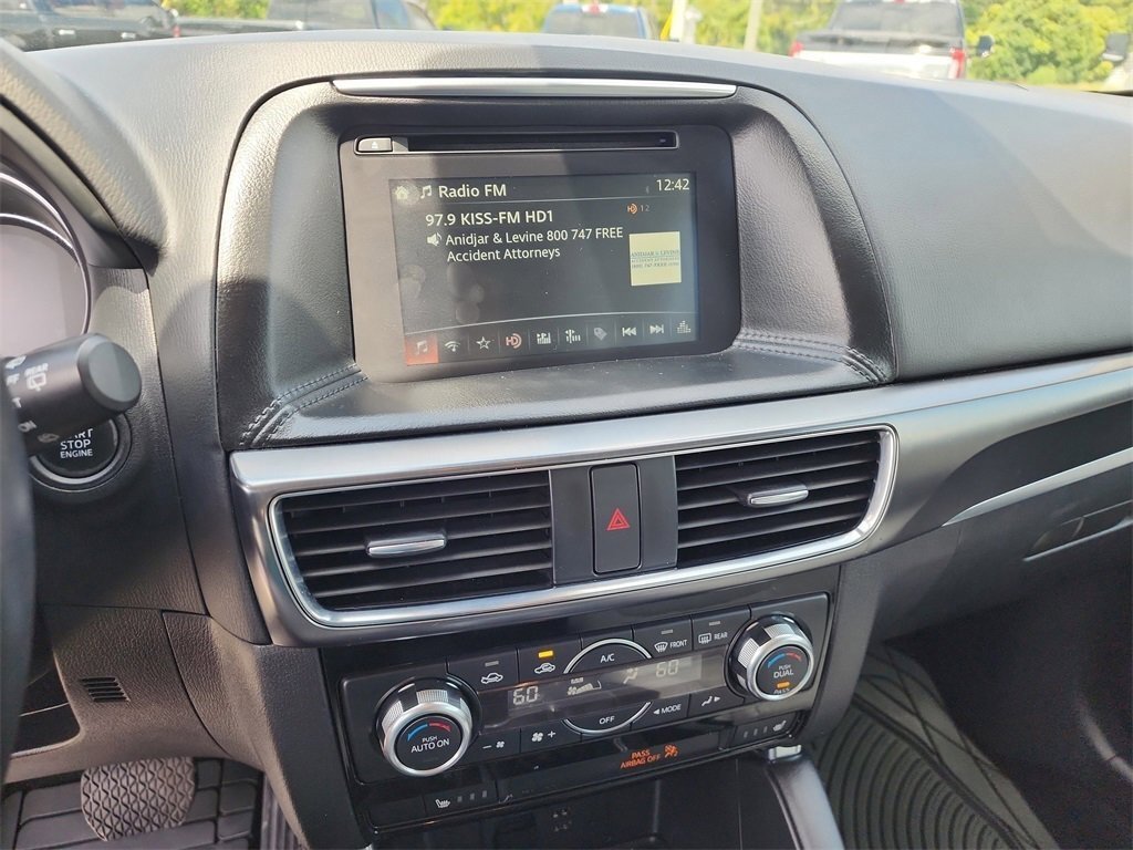 Experience style and performance with this White 2016 Mazda CX-5 Grand Touring SUV. Enjoy the power of the SKYACTIV-G 2.5L engine paired with a smooth 6-speed shiftable automatic transmission and FWD. This well-equipped CX-5 features luxurious leather upholstery, heated front seats, and a power-adjustable driver's seat with lumbar support for maximum comfort. Stay connected with the MAZDA CONNECT infotainment system, a 7-inch touchscreen, Bluetooth wireless data link, voice-operated radio, and integrated Pandora, Stitcher, and AHA internet radio apps. Safety is paramount with features like Blind Spot Monitoring, Rear Cross Traffic Alert, rearview camera, and advanced front/rear crumple zones. The Bose premium sound system, SiriusXM satellite radio, navigation system, and dual-zone automatic climate control elevate every drive. Aluminum alloy wheels, rain-sensing wipers, a power moonroof, and elegant leatherette trim add the finishing touches to this versatile SUV. Schedule your test drive today and discover the perfect blend of comfort, technology, and safety in your next Mazda CX-5 Grand Touring.